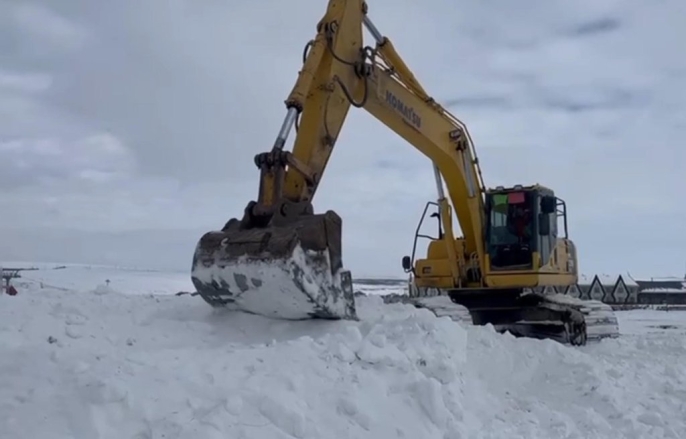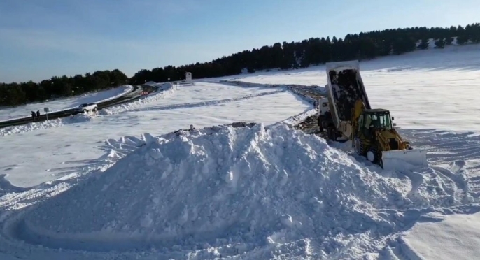 Sarıkamış Harekatı'nın 111'inci yılı anma etkinlikleri için Allahuekber Dağları'nda donarak şehit olan askerlerin anısına heykeller yapılacak. Bu kapsamda ilçede iş makineleri ve kamyonlarla kar toplanıyor.