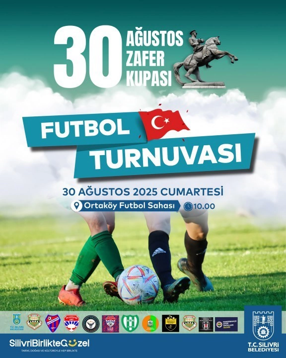 Futbol Turnuvası ise 30 Ağustos 2025 Cumartesi günü saat 10.00'da Ortaköy Futbol Sahası'nda, Voleybol Turnuvası da 30-31 Ağustos 2025 tarihlerinde saat 09.00'da Alibey Spor Salonu'nda düzenlenecek. Silivri Belediyesi'nin bu organizasyonuyla, hem 30 Ağustos Zafer Bayramı kutlanacak hem de sporun teşviki amaçlanıyor.