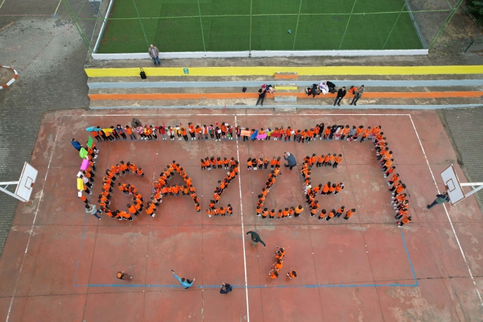Öğrenciler, bedenlerini kullanarak 'Gazze' yazısını oluşturdu ve ellerinde Filistin bayrakları taşıdı. Sosyal medyada büyük ilgi gören bu etkinlik, çocukların küçük yaşta küresel konulara duyarlı olmalarını teşvik etti. Etkinlik sayesinde okul çevresi, Filistin'e yönelik desteği somutlaştırdı.