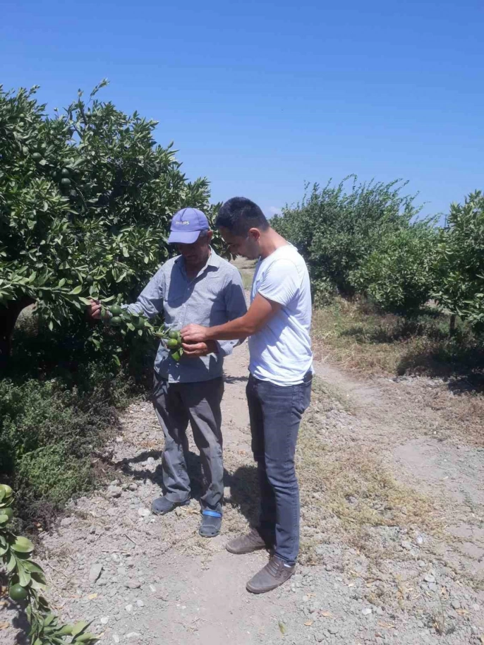 Tarımda sürdürülebilirliği artırmak ve üreticilerin verimliliğini yükseltmek amacıyla başlatılan proje çerçevesinde, bahçelerdeki bitki sağlığı durumu ve ürünlerin genel durumu titizlikle incelendi. Ekipler, tarımsal hastalık ve zararlılara karşı alınması gereken önlemler konusunda üreticilere detaylı bilgi verdi.