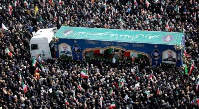 İran Ulusal Yüksek Konseyi Genel Sekreteri Ali Laricani, Devrim Muhafızları Ordusu'na bağlı Besic gücü komutanı Gulam Rıza Süleymani ve ABD saldırısında hayatını kaybeden 84 asker için Tahran'da anlamlı bir cenaze töreni düzenlendi.