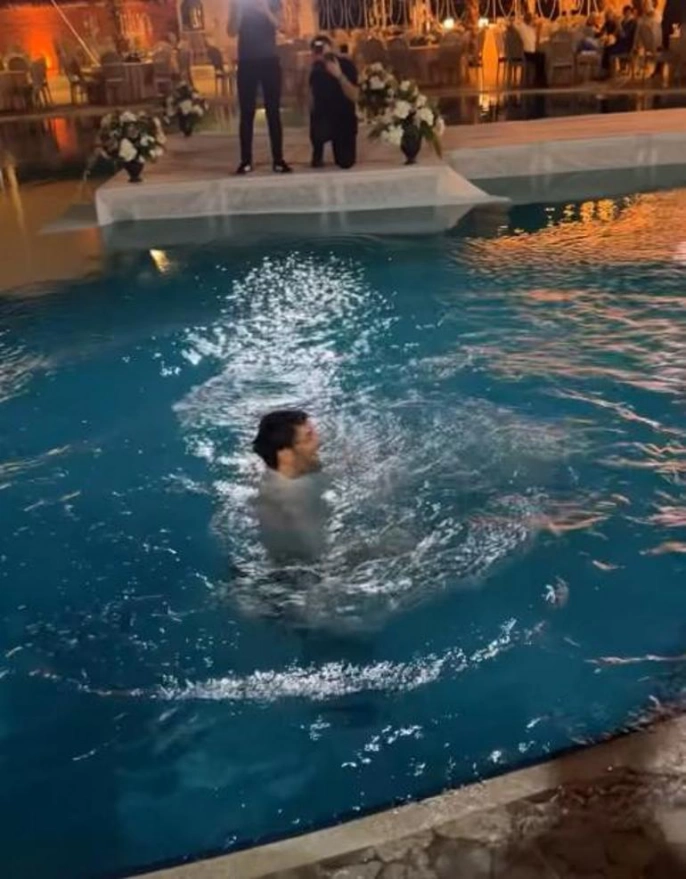 Sosyal medyada paylaşımlar yapan Rumeli'nin arkadaşları tarafından havuza atıldığı görüntüler de paylaşıldı. Düğün coşkusu sosyal medyada da geniş yankı buldu.