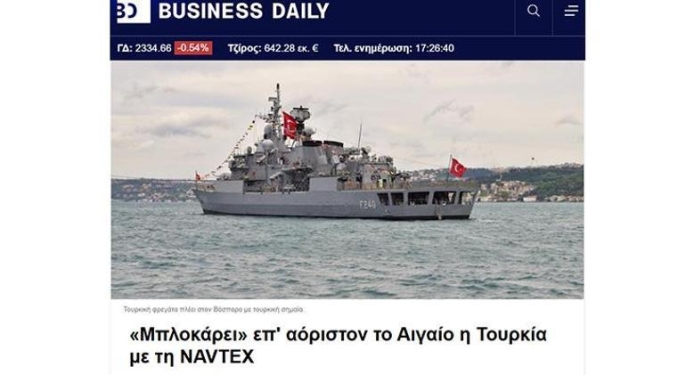 Yunan basını, Türkiye'nin bu adımını "benzeri görülmemiş zorluk" olarak nitelendirirken, Banking News gazetesi "Türkiye, geleneksel olarak belirli bir süre için geçerli olan NAVTEX'i süresiz geçerliliğe dönüştürerek emsalsiz bir adım atıyor" yorumunu yaptı. Haberde ayrıca, Milli Savunma Bakanlığı'nın kendi toprakları olarak kabul ettiği bölgelerdeki tüm Yunan araştırma faaliyetlerinin Türkiye ile koordine edilmesi gerektiğini iddia ettiği belirtilerek, "Yunanistan'ın kıta sahanlığına Türkler fiilen meydan okuyor" ifadeleri kullanıldı.