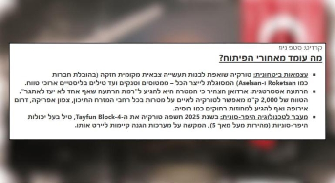 İsrail'in önde gelen haber kaynaklarından Natziv, Türkiye'nin savunma sanayisindeki son gelişmeleri dikkatle inceledi. Türkiye'nin 2000 kilometre menzil kapasitesine sahip Cenk füze programı, İsrailli uzmanlar tarafından değerlendirildi. Bu proje, Türkiye'nin caydırıcılık gücünü artırarak bölgesel bir güç olma çabasının önemli bir parçası olarak öne çıkıyor. Roketsan ve ASELSAN gibi yerli savunma firmalarının bu proje içindeki rolleri de önemli bir şekilde vurgulandı.
