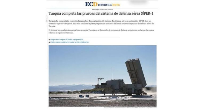 Türkiye'nin savunma sanayisindeki hamleleri dünya basınında geniş yankı buldu. Entegre Hava Savunma Sistemi Çelik Kubbe'ye eklenen SİPER Uzun Menzilli Hava Savunma Sistemi, uluslararası medyanın manşetlerine taşındı. Yunan, İspanyol, Belçika ve Azerbaycan basını, sistemin operasyonel testlerini başarıyla geçtiğini ve Türkiye'nin hava savunma kabiliyetinde önemli bir dönüm noktası olduğunu vurguladı.