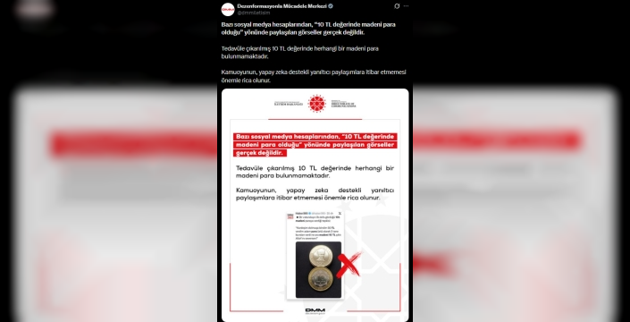 Cumhurbaşkanlığı İletişim Başkanlığı Dezenformasyonla Mücadele Merkezi (DMM), sosyal medya platformlarında dolaşıma sokulan ve 10 Türk Lirası değerinde madeni para basıldığına dair paylaşımların gerçeği yansıtmadığını duyurdu.