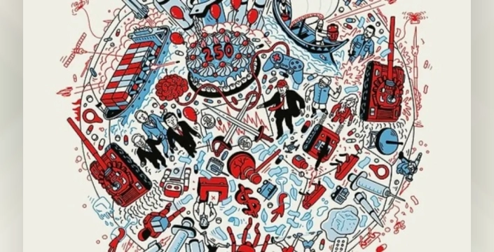 Kapakta yer alan '250' yazılı pasta ve kelepçeli yumruk, Han'a göre ABD'nin 250. kuruluş yıl dönümüne ve ülkenin içinde bulunduğu derin kutuplaşmaya gönderme yapıyor. Bu semboller, aynı zamanda Amerika'nın dış politikadaki artan çatışmacı eğilimlerini de gözler önüne seriyor. Pastanın etrafını saran füzeler, ABD'nin küresel ölçekteki meydan okumalarını temsil ediyor. Mars roketi ve uydular gibi unsurlar ise uzaydaki rekabetin kızışacağını ve yapay zekanın gelecekteki işgücü piyasasını şekillendireceğini öngörüyor. Zelenski'nin varlığı Ukrayna'daki savaşın devam edeceğine, ilaç figürleri ise tıp alanındaki gelişmelerin yanı sıra spor dünyasındaki doping tartışmalarının etkisinin süreceğine işaret ediyor.
