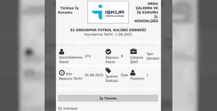 TFF 3. Lig'de mücadele eden 52 Orduspor FK'nın İŞKUR üzerinden futbolcu ilanı vermesi, sosyal medyada büyük yankı uyandırdı. İŞKUR internet sitesi üzerinden iş arayanlar, 52 Orduspor'un dikkat çeken ilanıyla karşılaştı.