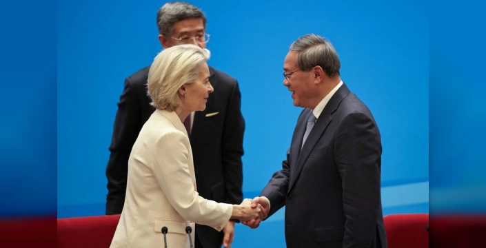 Von der Leyen ise zirvenin Çin ile ikili ilişkilerde ilerleme kaydetmek için iyi bir fırsat sunduğunu söyledi. Ticaret ve yatırım konularındaki endişelerini Çinli liderlere açıkça dile getirdiklerini belirterek, Avrupa Birliği'nin Çin'in toplam ihracatının %14,5'ini oluştururken, Çin'in AB ihracatının sadece %8'ini temsil ettiğini, bu dengesizliğin ticaret aksaklıkları ve pazara erişim engellerinden kaynaklandığını vurguladı. Ticaret açığının son on yılda ikiye katlanarak 300 milyar euroyu aştığını, net bir dönüm noktasında bulunduklarını ifade etti. Çin'in Ukrayna savaşındaki Rusya'ya verdiği desteğin Avrupa güvenliğini tehdit ettiğini, endişelerini açıkça dile getirdiklerini belirtti. Çin'i nüfuzunu kullanarak Rusya'yı ateşkese zorlamaya çağırdı ve Çin'in Putin'in savaşına yaklaşımının gelecekteki ilişkilerini belirleyeceğini söyledi. ABD ile ticaret anlaşması konusuna ilişkin soruya ise, müzakere edilmiş bir çözüme ulaşmayı hedeflediklerini ve diğer tüm araçların da masada olduğunu belirtti.