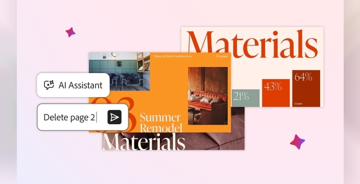 Geçen yıl Adobe Spaces'i tanıtan şirket, bu platformda saklanan bilgileri kullanarak sunum oluşturma imkanı sunuyor. Örneğin, bir kullanıcı finansal detaylar, ürün planları ve rakip analizi gibi bilgileri bir alan içinde bulunduruyorsa, bu bilgileri kullanarak müşterilere yönelik bir sunum hazırlayabiliyor. Acrobat'ın yapay zeka asistanı, öncelikle sunumda ele alınacak noktaları içeren düzenlenebilir bir sunum oluşturuyor. Kullanıcılar, Adobe Express’in tema kütüphanesinden yararlanarak ya da kendi görsellerini ekleyerek sunumu oluşturabiliyor. Ayrıca, marka temasını uygulamak ya da bireysel slaytları düzenlemek oldukça kolay.