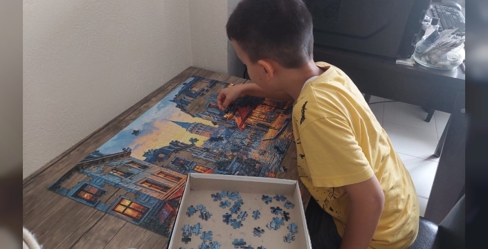 Osmaniye'nin Toprakkale ilçesinde yaşayan 10 yaşındaki Ahmet Hamza Talan, puzzle'larla olan tutkusuyla dikkat çekiyor. Şu ana kadar bin ve iki bin parçalı 30'a yakın puzzle'ı tamamlayan Talan, eserlerini sergiyle tanıtmayı hayal ediyor.