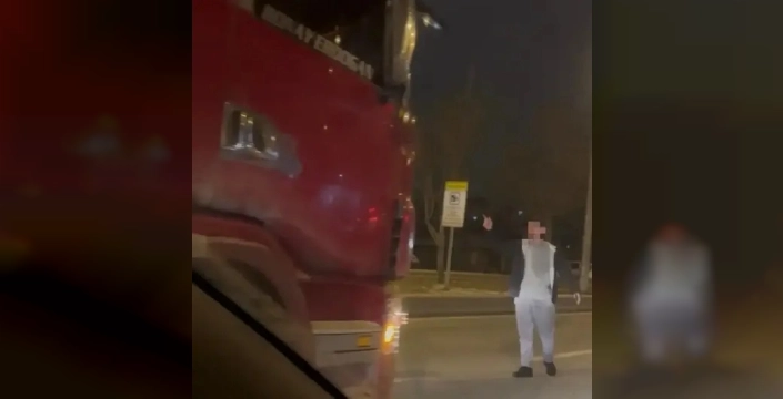 Seyir halindeki tırın önüne aniden atlayan M.A.D. isimli şahıs, aracın ilerlemesine izin vermedi. Tır şoförünün müdahalesine rağmen ikna olmayan M.A.D., eylemini sürdürdü. Bunun üzerine olay yerine gelen şahsın yakınları, güçlükle M.A.D.'yi yol kenarına çekmeyi başardı. Yaşanan bu durum nedeniyle trafik kısa süreliğine kilitlendi.