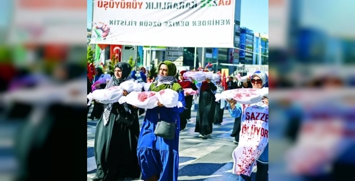 Melike Hatun Camii'nden başlayan yürüyüş, 15 Temmuz Milli İrade Meydanı'nda son buldu. Yürüyüşe, akademisyenlerden sanatçılara, sağlık çalışanlarından engellilere kadar toplumun her kesiminden binlerce kişi katılarak Gazze'ye destek mesajı verdi.