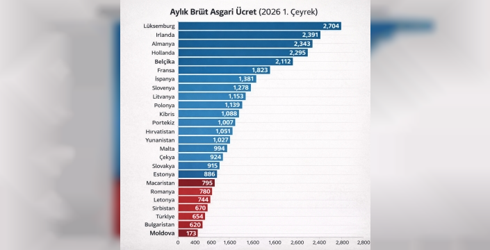 Avrupa Birliği üyesi ülkelerde aylık brüt asgari ücret, Bulgaristan'da 620 eurodan Lüksemburg'da 2 bin 704 euroya kadar uzanıyor. Aday ülkeler de dahil edildiğinde, Ukrayna 173 euro ile en düşük seviyede yer alırken, Moldova 319 euro ile onu takip ediyor. Bu durum, Avrupa genelinde hem bölgesel hem de ekonomik açıdan belirgin bir uçurum olduğunu gösteriyor. Beş AB ülkesinde asgari ücret 2 bin euronun üzerine çıkmış durumda: Lüksemburg, İrlanda (2 bin 391 euro), Almanya (2 bin 343 euro), Hollanda (2 bin 295 euro) ve Belçika (2 bin 112 euro).