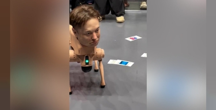 Mekanda dolaşan robot köpekler fotoğraf çekiyor ve her biri temsil ettiği ismin estetiğine göre dijital bir baskı 'üretiyor.' Zuckerberg'in çıktıları Metaverse'e gönderme yaparken Musk'ınki siyah beyaz robotik bir yorum sunuyor. Picasso ve Warhol versiyonları ise sırasıyla kübist ve pop art çizgilere yakın duruyor.