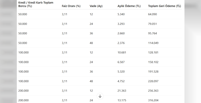 Düzenlemeden faydalanmak için kredi kartı borçlarında dönem borcunun kısmen veya tamamen ödenmemiş olması yeterli olacak. Asgari tutarı ödeyen veya hiç ödeme yapmayan kart kullanıcıları yapılandırmaya başvurabilecek. İhtiyaç kredilerinde ise 30 günden fazla gecikmiş ödeme şartı aranacak. Örneğin, aylık taksiti 20 bin lira olan bir ihtiyaç kredisinin bir ay ödenmemesi yapılandırma hakkı doğuracak. Yapılandırma başvuruları üç ay içinde yapılmalı ve vade süresi 48 ay ile sınırlandırıldı. Kredi kartı borcunu yeniden yapılandıranlar için, yapılandırılan borcun yüzde 50'si ödenene kadar kart limitinin artırılmaması kuralı uygulanacak. Yapılandırma tutarının mevcut kredi kartı limitini aşması durumunda, aşan kısım limit ihlali olarak değerlendirilmeyecek. Borç tutarına göre aylık ödeme örnekleri de paylaşıldı: 50 bin liralık borç 12 ay vadeyle yapılandırıldığında aylık ödeme yaklaşık 5 bin 340 lira, 100 bin liralık borç için aylık taksit 10 bin 681 liraya çıkıyor. 500 bin liralık borçta aylık ödeme 53 bin 409 lira, 1 milyon liralık borcun aylık taksiti ise yaklaşık 47 bin 520 lira olarak hesaplanıyor.
