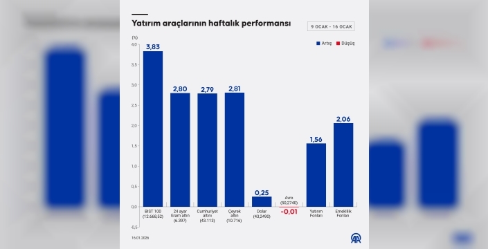 ABD doları, bu hafta yüzde 0,25 artarak 43,2490 liraya çıkarken, avro yatay seyirle 50,2740 lirada kaldı. Yatırım fonları haftada yüzde 1,56, emeklilik fonları ise yüzde 2,06 değer kazandı. Yatırım fonları kategorileri arasında en yüksek getiriyi yüzde 4 ile 'borsa yatırım' fonları sağladı.