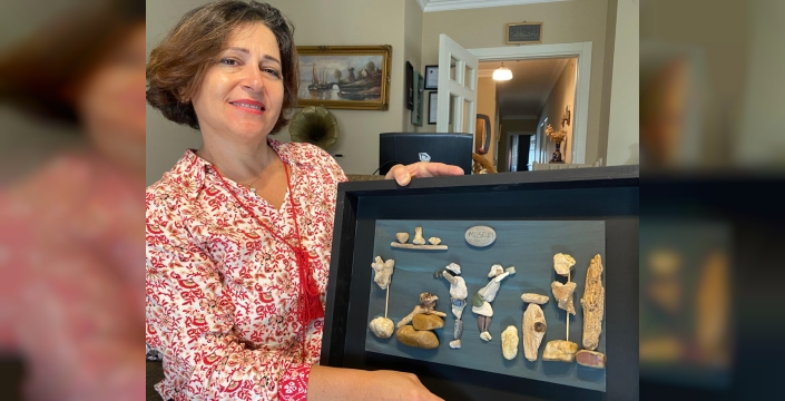 Emekli kimya mühendisi Sopiha Eyüboğlu Ügümü, Kovid-19 salgını döneminde evinde geçireceği zamanı değerlendirmek için çakıl taşı sanatıyla tanıştı.