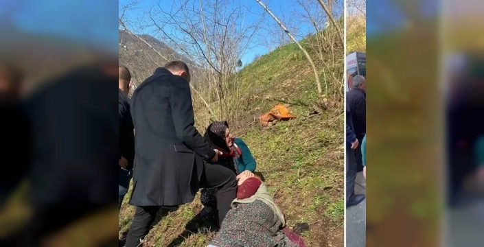 Trabzon'un Vakfıkebir ilçesinde cenazeye katılmak üzere yola çıkan vatandaşlar, fındık bahçesine yuvarlanan yaşlı bir kadının yardımına koştu.