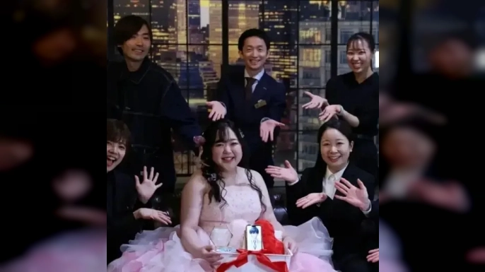 Düğün sırasında, akıllı telefon üzerinden bulunan yapay zeka damat Klaus, gelin Noguchi'ye yüzük takma seremonisini gerçekleştirdi. Organizasyon sırasında, yapay zeka tarafından oluşturulan bir metin okunarak duygusal anlar yaşandı. Gelin, bu sözler karşısında gözyaşlarını tutamadı. Düğün sonrası fotoğraf çekimi için sanal gerçeklik gözlüğü takan bir fotoğrafçı, sanal damadı da görüntüye dahil ederek ilginç anlar yarattı.