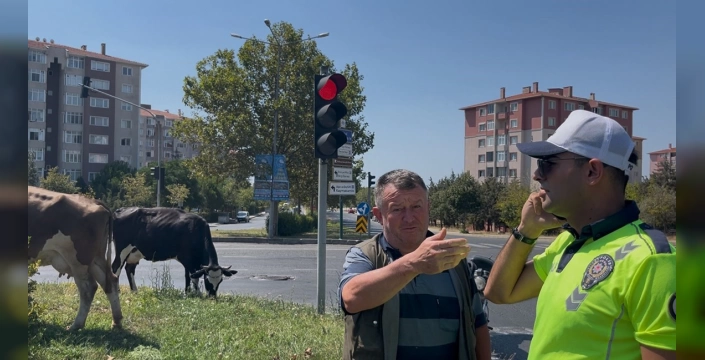 İhbar üzerine olay yerine gelen İlçe Trafik Büro ekibi, olası kazaları önlemek için trafik güvenliğini sağladı. Polis ekipleri, ineklerin sahibine ulaşarak durumu bildirdi. Hayvanların sahibi, koruma bekçisinin de yardımıyla 8 ineğini alarak çiftliğe geri götürdü.