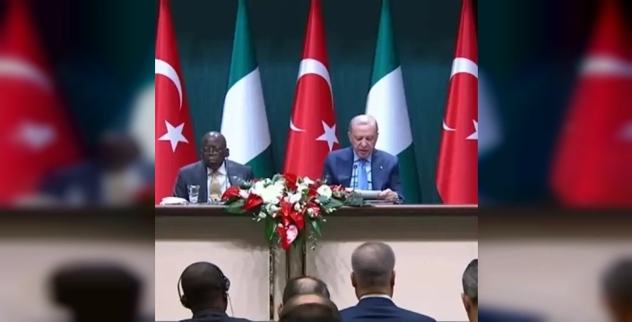 Cumhurbaşkanı Recep Tayyip Erdoğan, resmi ziyaret için Türkiye'de bulunan Nijerya Cumhurbaşkanı Bola Ahmed Tinubu'yu, devlet töreni ile karşıladı. İkili görüşmelerin ardından düzenlenen ortak basın toplantısında Erdoğan, Nijerya'nın Türkiye için önemli bir ticaret ortağı olduğunu ve iki ülke arasındaki ticaret hacmini 5 milyar dolara ulaştırmayı hedeflediklerini belirtti.