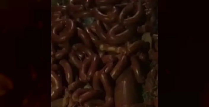Karşıyaka Mahallesi'nde bulunan boş bir araziye, kimliği belirsiz kişiler tarafından yüzlerce kilo sucuk, kavurma ve salam atıldı. Bu durum, bölgeden geçen bir vatandaş tarafından fark edildi ve cep telefonuyla kaydedilerek yetkililere ihbar edildi.