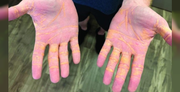Aşırı yağ tüketimi sonucunda hastanın avuç içlerinde, ayak tabanlarında ve dirseklerinde