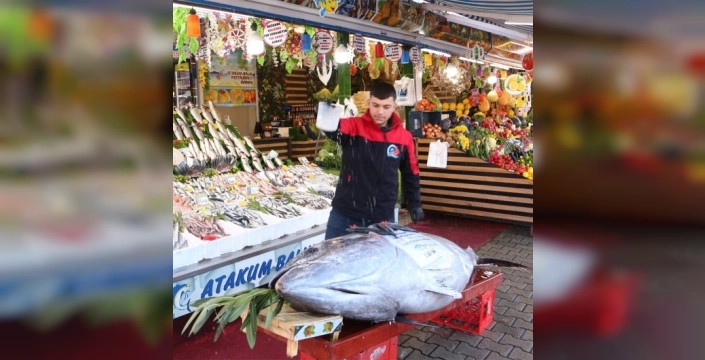 353 kilogram ağırlığında ve tam 2 metre 50 santimetre uzunluğundaki orkinos, balık pazarının yolunu tuttu. Satış için Samsun'a getirilen balık, Atakum'daki tezgahta forklift yardımıyla indirildi. Bu devasa balığın yanı sıra, benzer bir olay 30 Aralık'ta da yaşanmıştı. O tarihte yine aynı bölgede 346 kilo ağırlığında ve 2 metre 40 santimetre boyunda bir orkinos daha yakalanmıştı.