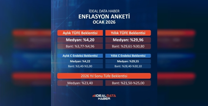 İdeal Data Haber'in son anketine göre, ocak ayında aylık enflasyon için medyan beklenti yüzde 4,20, ortalama tahmin ise yüzde 4,22 artış yönünde oldu. Bu da enflasyonda yukarı yönlü risklerin devam ettiğini gösteriyor.