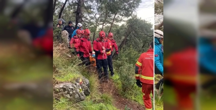 Muğla'nın Fethiye ilçesinde, Faralya Mahallesi Kabak Koyu yakınlarındaki kayalıklardan düşerek yaralanan 26 yaşındaki Cihan A., ekiplerin titiz çalışması sonucu kurtarıldı.