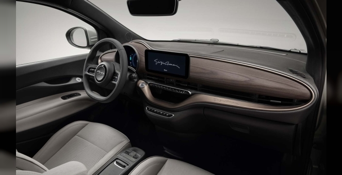 Fiat 500e Giorgio Armani Collector's Edition'ın iç mekanı da dış tasarımı kadar iddialı. Geleneksel el sanatlarını modern teknolojiyle birleştiren kabinde, lazer kesim ahşap kaplamalar ve özel şerit dikişli koltuklar lüks hissini pekiştiriyor. Gösterge panelinde, iç kapılarda ve koltuklarda Giorgio Armani'nin imzası ve logosu bulunuyor. Araç, JBL ses sistemi, 7 inç TFT gösterge ekranı ve kablosuz CarPlay/Android Auto destekli 10,25 inç dokunmatik navigasyon sistemi gibi zengin teknolojik donanımlara sahip. 87 kW (118 HP) güç üreten elektromotoruyla 320 kilometreye varan menzil sunan Fiat 500e Armani, Seviye 2 sürüş destek sistemleriyle de güvenli bir yolculuk vaat ediyor.