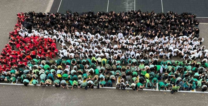 Bursa'da 600 öğrenci, Filistin'e yönelik bir etkinlik düzenledi. Okul bahçesinde dev bir bayrak koreografisi oluşturdukları etkinlik, uluslararası konulara duyarlılığın göstergesi oldu.