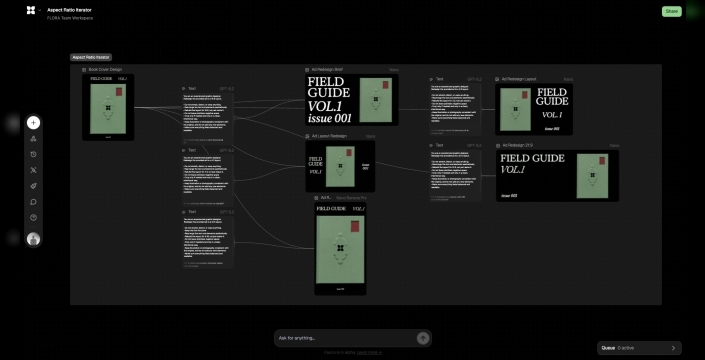Flora, kullanıcıların görsel, metin veya video kullanarak medya varlıkları oluşturmasına olanak tanıyor. Kullanıcılar ayrıca, birden fazla yineleme ile yeni düğümler oluşturmak için istemleri kullanarak değişiklikler yapabiliyor. Bu oluşturulan sürümler, izlenebilir bir yaratım akışı sağlamak için bir tuval üzerinde birbirleriyle eşleştiriliyor. Örneğin, biri bir pazarlama videosu oluşturmak isterse, referans görüntüler ve metin istemleri sağlayarak bir konsept oluşturabiliyor. Ardından, hangisinin daha iyi olduğunu görmek için farklı videoları zıt stillerde yapmak için farklı istemler ekleyebiliyor.