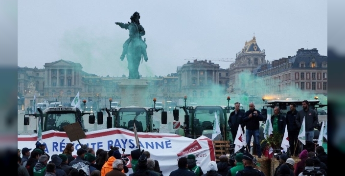Ülkenin önde gelen çiftçi sendikalarından FNSEA'nın çağrısıyla bir araya gelen Fransız çiftçiler, haksız rekabete yol açacağını düşündükleri AB-MERCOSUR anlaşmasından vazgeçilmesi talebinde bulundu. Eylemciler, "Çiftçi isyanı Versay'da yeniden başlıyor" yazılı bir pankart açarak, traktörleriyle kentte konvoy oluşturdu.