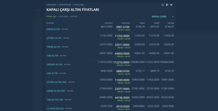 ABD Başkanı Donald Trump'ın Grönland'a yönelik ısrarı ve Avrupa ile ticaret savaşı riski, altın fiyatlarında tarihi rekorların kırılmasına yol açtı. Ons altın, güvenli limana olan talebin artması ve doların zayıflamasıyla sabah seansında 4 bin 870 dolara yükselerek rekor kırdı. Gram altın ise 6 bin 779 liraya çıkarak rekor tazeledi, Kapalıçarşı'da 6 bin 901 liraya yaklaştı ve dünden beri 157 lira kazandırdı.
