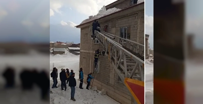 Hakkari'nin Yüksekova ilçesinde kar temizlemek amacıyla çıktığı evinin çatısında, ayağının kayması sonucu beline bağladığı iple asılı kalan bir kişi, itfaiye ekipleri tarafından kurtarıldı.