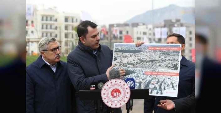 Bakan Kurum, Antakya'daki Emek-Aksaray Mahallesi'nde tamamlanan konutları yerinde inceleyerek bir basın açıklaması yaptı. Bölgede 6 bin konut ve 655 iş yerinin modern, güvenli ve yeşil alanlarla donatılmış bir şekilde yeniden inşa edildiğini belirten Kurum, mahallenin Hataylılar için özel bir anlam taşıdığını vurguladı. Depremin ardından enkaz yığınlarından oluşan alanların, bugün parkları, bahçeleri ve güvenli yuvalarıyla yeni bir yaşam merkezine dönüştüğünü ifade etti.