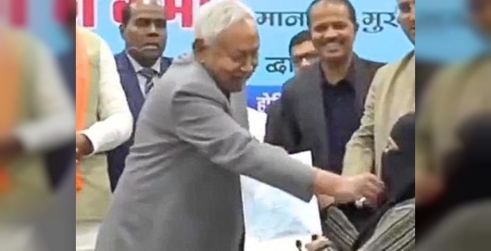 AYUSH sistemine bağlı 1.283 doktorun atama belgelerinin dağıtıldığı törende, yüzü örtülü olarak sahneye çıkan genç doktorun yanına gelen Başbakan Kumar'ın, 'Bu nedir?' diyerek peçesini aşağı çekmeye çalıştığı görüntülere yansıdı. Bu sırada Başbakan Yardımcısı Samrat Choudhary'nin Kumar'ın kolunu tutarak müdahale etmeye çalıştığı da görüldü. Olayın ardından doktor şaşkınlık içinde kenara alındı. Telegraph Online, görüntülerin doğruluğunu bağımsız olarak teyit edemediğini belirtse de, Başbakan'ın partisinin bu iddiayı kesin bir dille reddetmemesi dikkat çekti.
