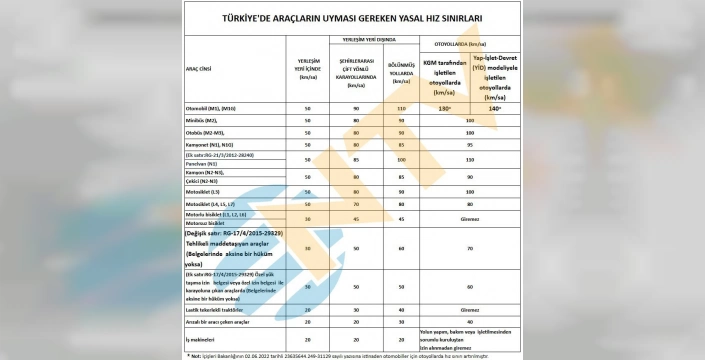 İstanbul'da 3 şeritli E-5 yolunda 80 kilometre olarak belirlenen hız sınırı, sık aralıklarla yerleştirilen kameralarla denetleniyor. Trafiğin yoğun olmadığı zamanlarda bile bu hız sınırının zaman kaybına yol açtığı belirtiliyor. Türkiye'deki hız sınırları yerleşim yeri içi, yerleşim yeri dışı ve otoyollar olmak üzere kategorilere ayrılmış olup, azami hız sınırının üzerine yüzde 10 tolerans uygulanıyor. Örneğin, Yap-İşlet-Devret modeliyle işletilen otoyollarda otomobiller için yasal hız sınırı 140 kilometre/saat iken, yüzde 10 toleransla birlikte 154 kilometreye çıkıyor. Araç tiplerine göre de hız sınırları farklılık gösteriyor. En yüksek hız sınırı otomobillere tanınırken, minibüs, otobüs, kamyonet, panelvan, kamyon, çekici, motosiklet, traktör ve iş makineleri için ayrı ayrı hız limitleri bulunuyor. Navigasyon uygulamaları üzerinden bulunduğunuz yoldaki hız sınırını kontrol ederek cezayla karşılaşmaktan kaçınabilirsiniz.