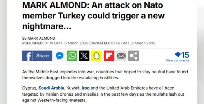MİLLİYET.COM.TR / Orta Doğu'da ABD, İsrail ve İran arasındaki savaşın giderek şiddetlendiği bir dönemde, İngiliz basınından Daily Mail, bölgedeki çatışmanın yeni ülkeleri de içine çekebileceğine dair çarpıcı bir analiz yayınladı.