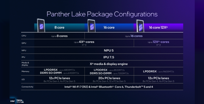 Panther Lake ailesi, üç farklı yonga konfigürasyonuyla piyasaya sürülüyor. Giriş seviyesinde 4 performans ve 4 düşük güç tüketen çekirdekten oluşan yapı Lunar Lake ailesinin yerini alırken, üst seviyede 16 çekirdekli modeller Arrow Lake-H serisinin yerini alıyor. En üst düzey yapılandırma ise 12 Xe grafik çekirdeği ve LPDDR5X-9600 bellek desteğiyle geliyor. TSMC ve Intel üretim süreçlerinin hibrit olarak kullanıldığı bu tasarım, esneklik ve performansı bir arada sunuyor. Intel'in 18A teknolojisine geçişi, şirketin yarı iletken pazarındaki rekabet gücünü artırarak Asya merkezli üreticilere karşı stratejik bir avantaj sağlıyor.