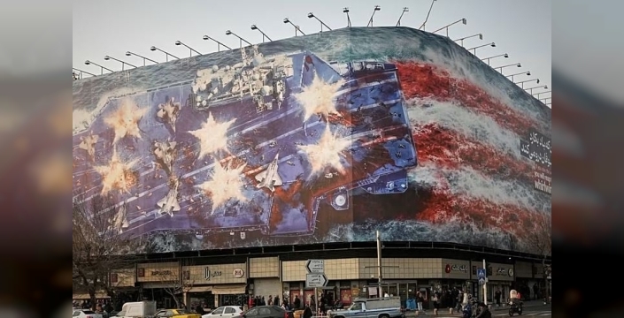 İran, başkenti Tahran'daki Enghelab (Devrim) Meydanı'na yerleştirdiği yeni bir reklam panosuyla ABD'ye karşı sert bir uyarı mesajı yayınladı.
