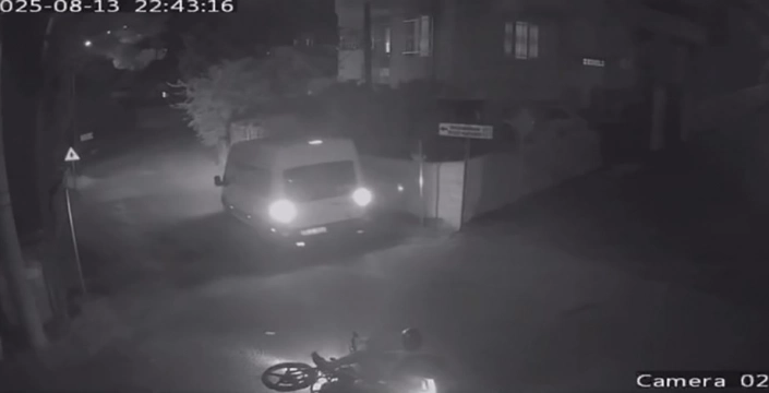 Sokak üzerinde seyir halinde olan motosiklet, sokak kesişiminde minibüsle çarpıştı. Çarpışmanın şiddetiyle motosiklet sürücüsü yola savruldu ve her iki araçta da maddi hasar meydana geldi. Kazanın ardından minibüs sürücüsü yaralı motosiklet sürücüsüne yardım etti. Olay, çevredeki bir iş yerinin güvenlik kamerası tarafından kaydedildi.