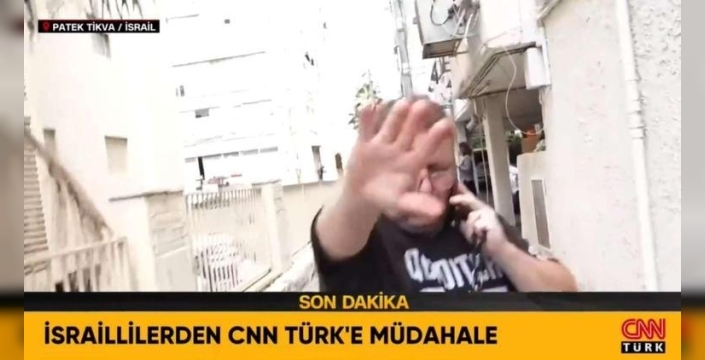 Bölgedeki bazı İsrailliler, CNN Türk muhabiri Serdar Er ve kameraman Alper Öztürk’e müdahale etti. Bir İsrailli sivil, kamerayı eliyle kapatmaya çalıştı ve bu anlar görüntülendi. Muhabir Serdar Öz, bu durumu şu sözlerle aktardı: 'Tam yayına girerken, bir sivilin engellemeleriyle karşılaşıyoruz. İran misillemesinin tahribatını görüntülerken, İsrailli sivil kameramıza müdahale ediyor.' Bu müdahale sonrasında ekip, olay yerinden çıkarılmak zorunda kaldı.