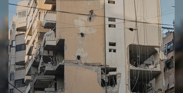 Pazartesi günü Beyrut'un Haret Hreik banliyösünde ağır makineler ve işçiler enkaz ile kırık camları temizledi. Teknik ekipler ayrıca hasar gören elektrik kablolarını onarmak için çalışıyor ve elektrik şebekesini restore etmeye çalışıyor.