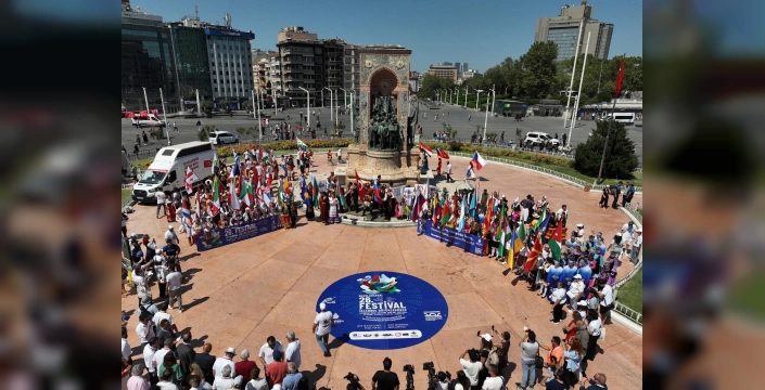 26. Uluslararası İstanbul Büyükçekmece Kültür ve Sanat Festivali'nin çelenk töreni, Büyükçekmece Belediyesi tarafından Taksim Meydanı'nda düzenlendi. Katılımcılar, ülkelerine özgü bayraklar ve folklorik kıyafetlerle meydanda gösteri yaptılar.