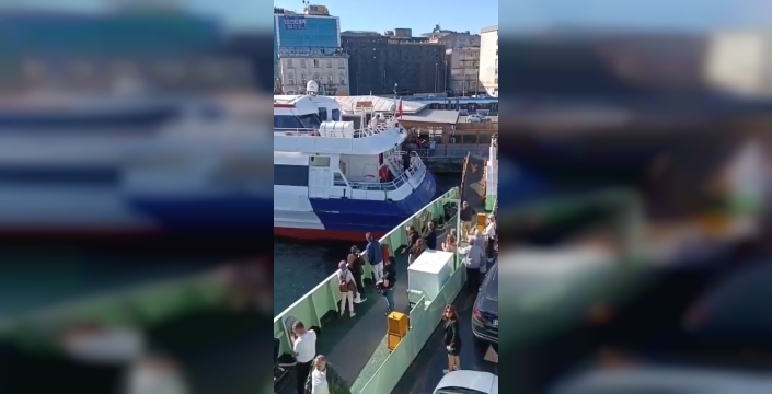 İstanbul'un yoğun iskelelerinden Eminönü'nde sabah saatlerinde akılalmaz bir kaza yaşandı. Harem-Sirkeci hattında sefer yapan bir arabalı vapur, henüz belirlenemeyen bir nedenle dümeninin kilitlenmesi sonucu kontrolden çıkarak önce park halindeki bir İDO feribotuna, ardından da iskeleye çaptı. Olay, paniğe neden olurken, şans eseri can kaybı veya yaralanma yaşanmadı.