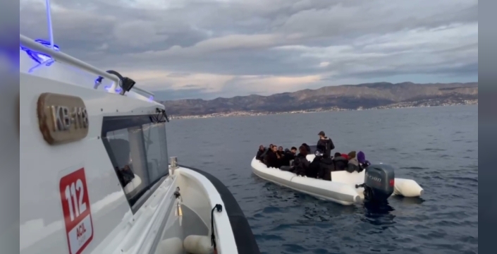 İzmir'in Çeşme ilçesi açıklarında, motor arızası nedeniyle sürüklenen bir lastik bottaki 26 düzensiz göçmen, Sahil Güvenlik ekipleri tarafından kurtarıldı.
