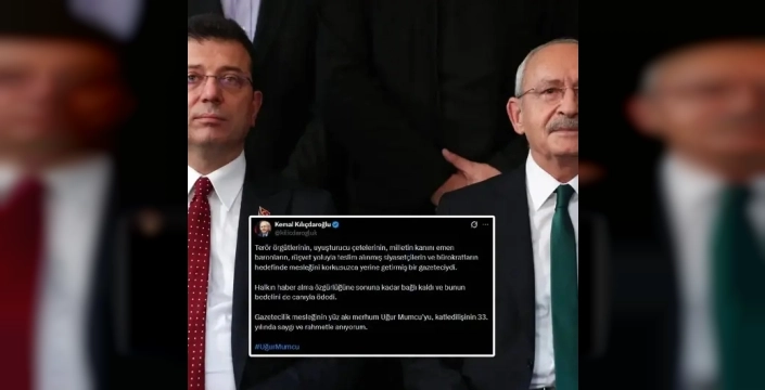 Kılıçdaroğlu, Uğur Mumcu'yu anarken yaptığı paylaşımda şu ifadeleri kullandı: 'Terör örgütlerinin, uyuşturucu çetelerinin, milletin kanını emen baronların, rüşvet yoluyla teslim alınmış siyasetçilerin ve bürokratların hedefinde mesleğini korkusuzca yerine getirmiş bir gazeteciydi. Halkın haber alma özgürlüğüne sonuna kadar bağlı kaldı ve bunun bedelini de canıyla ödedi. Gazetecilik mesleğinin yüz akı merhum Uğur Mumcu'yu, katledilişinin 33. yılında saygı ve rahmetle anıyorum.' Mesajda yer alan 'rüşvet yoluyla teslim alınmış siyasetçiler' ifadesi, CHP'de son dönemde gündemden düşmeyen İBB merkezli yolsuzluk iddialarıyla birlikte okundu.